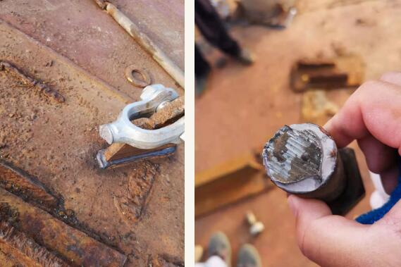 鋼絲或者鐵鏈要經(jīng)常檢測;一次最好不要全部用新鏈條,因?yàn)?,剛上的鏈條,沒有經(jīng)過船上實(shí)際檢測,由于鋼材品質(zhì),同一批爐號的鋼材,如果工藝有缺陷,有時會大批量地出現(xiàn)問題,在船上會非常被動。此外,一定要比計(jì)劃多留出5-10%的綁扎材料,做為備件,以為海上應(yīng)急之需。