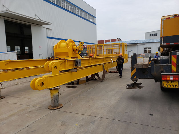 2018年5月21日凌晨5:30分左右,9輛貨車從青島市黃島區(qū)途經(jīng)青蘭高速發(fā)往青島城陽區(qū)天時海洋石油裝備有限公司,此次淳遠(yuǎn)服務(wù)的項目是“保稅物流一日游”業(yè)務(wù)。大約7點(diǎn)30分,貨車依次駛?cè)胩鞎r海洋廠區(qū)內(nèi),此次運(yùn)輸?shù)呢浳锟傊貫?69噸的設(shè)備機(jī)組,上午8時許,操作正式開始。